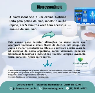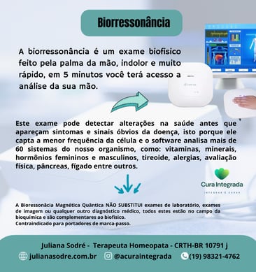 Transforme sua jornada de saúde com a Biorressonância. A prevenção e o equilíbrio estão ao alcance das suas mãos, proporcionando não apenas uma análise, mas uma estratégia personalizada para uma vida vibrante e saudável.